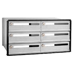 Our 2400 series data distribution system aluminum boxes have 1/4'' thick extruded aluminum doors with a durable powder coated aluminum finish. Each door includes a 3/4'' H door slot, a five (5) pin cylinder cam lock with two (2) keys and is hinged horizontally at the bottom. Alternative locking systems (see related items) are available. Doors are available without slots upon request. The compartments have open backs (rear covers - related item #2451 - are available as an option upon request) and are constructed of 20 gauge steel. All units have the same outside dimensions. Data distribution system boxes are designed to be installed between rack ladders (#2400). The rack ladders support five (5) units to form a column of boxes. Data distribution system boxes can also be used in Free-Standing Rotary Mail Centers and Free-Standing Roll-A-Bout Mail Centers.