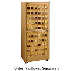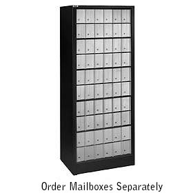 Made of 18 gauge steel, our 2300 series Free-Standing Roll-A-Bouts include casters for mobility and are useful when space is limited as wall construction is not required. Free-Standing Roll-A-Bouts are rear loading and feature a durable powder coated finish. Each Free-Standing Roll-A-Bout Mail Center includes a large rear door and are locked by placing a standard padlock (related item #2390) through a steel hasp. Aluminum style Roll-A-Bouts (#2300) are designed to accommodate a combination of five (5) aluminum rack ladder system mailboxes and data distribution system boxes and are powder coated black. Brass / Americana style Roll-A-Bouts (#2350) are designed to accommodate a combination of two (2) brass or Americana rear loading mailbox units and are powder coated tan. ORDER MAILBOXES SEPARATELY. |