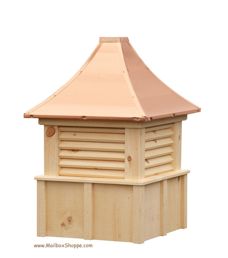Board and Batten cupola with louvers and pagoda style copper roof