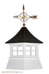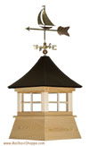 To order, you need to select the cupola size, the material (wood or vinyl), standard or deluxe model, standard or tall base, and to include a weathervane or not.