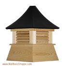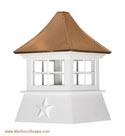 Our cottage series cupolas feature either vinyl or natural wood construction, standard or pagoda style copper or black aluminum roofs, window or louvered mid-sections, and stylish flared bases. The standard size cupola fits up to a 8/12 pitch roof. The tall size has a base section tall enough to fit up to a 12/12 pitch roof.