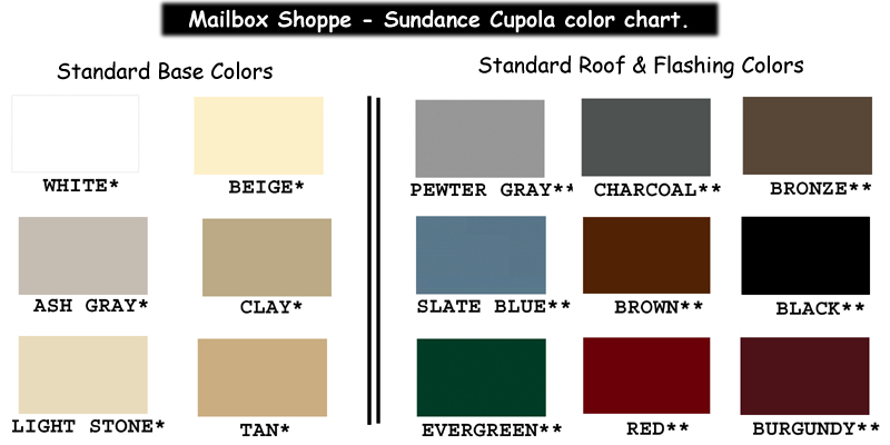 These units are available in your choice of colors using the available colors as shown in the color chart at right.