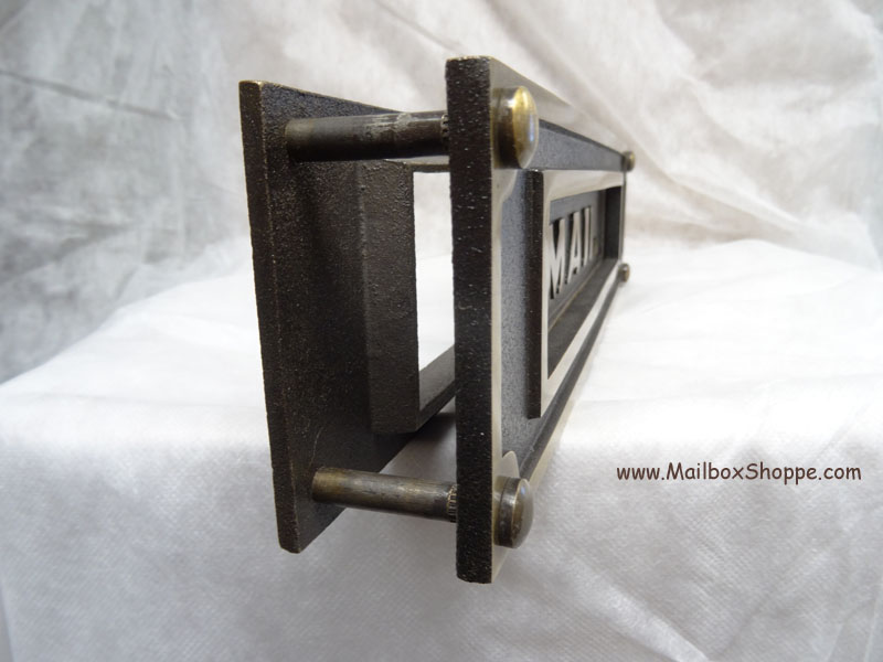 Made of brass, these two (2) piece deluxe mail slots are handcrafted and have the word “MAIL” cast into the flap. Heavy duty tamperproof brass bolts secure the front and back frames to each other from the rear and accommodate solid doors and walls from 1-1/4'' through 1-7/8'' deep.