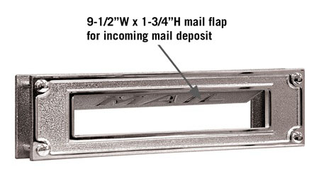 • mail flap: 9-1/2'' W x 1-3/4'' H