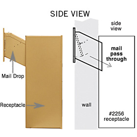 The optional receptacle has a 12" W x 6" H rear opening which aligns with the mail drop chute for receipt of deliveries.