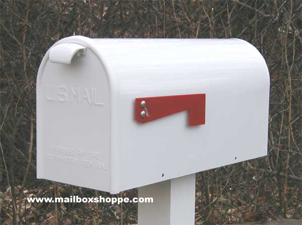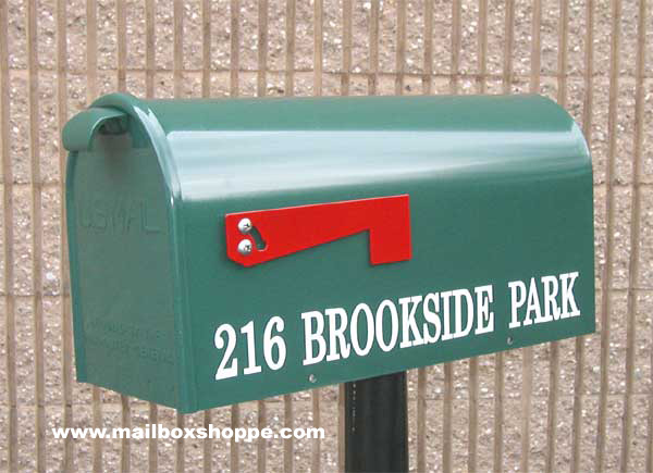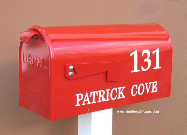 The mailbox is available in 6 colors: black, white, green, bronze, red and burgundy. The post is available in black, white, or green. Vinyl-cut lettering available black, white, silver, or gold.