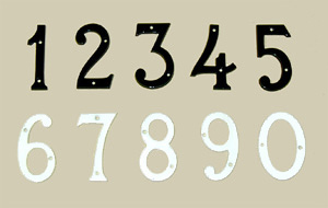 These are cast aluminum numbers painted glossy white. Includes two painted screws for attaching to any flat surface.