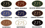These signs are individually custom-made from cast aluminum and finished with the highest quality exterior paints to help them last for many years. Each sign is available for either wall-mounting or with a stake for mounting in the ground. Click the color chart above to see the nine available color combinations. |