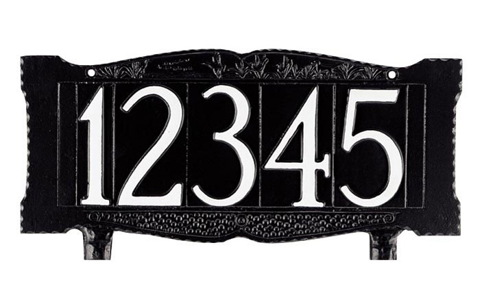 These cast aluminum signs are available for mounting on top of a mailbox, against a post, or mounted to stakes to be used as a lawn sign.