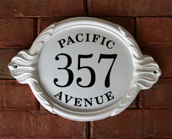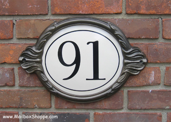 The Olympia Sign has a cast aluminum frame and porcelain sign plates. It measures 16" wide x 10" high. Porcelain signs have been made for hundreds of years. Castles in Europe have porcelain signs. The plates will last longer than any other signs we sell. They are a classy addition to any style home.