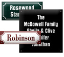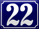 European style porcelain enamel house signs and number signs. All signs available with choice of five color combinations, five typefaces, and three different edge trims. Many standard sizes to choose from, but each size can also be customized to your needs. Adding logos is also possible. Ask !