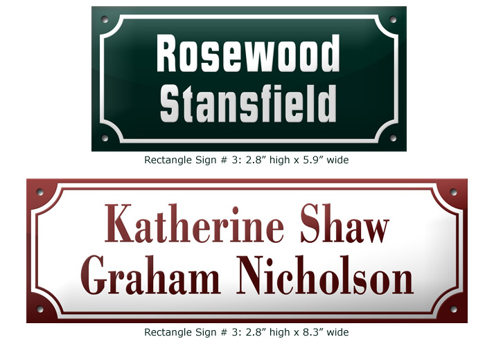 Rectangle Sign # 5 (1 or 2 lines) 3.1" h x 10.6 " w - $189.00 White with Black Double Trim
