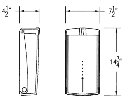 Dimensions: 7.5" w x 14.75" h x 4.5 " d.