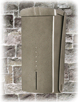 This cast aluminum mailbox features a drop-down, front panel design. Simple and kind of cool looking. Available in black, white, and architectural brown.