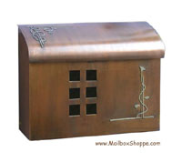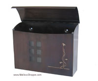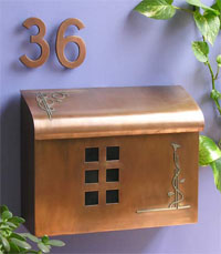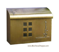 Arts and crafts style mailbox handcrafted in solid brass available with plated finishes.