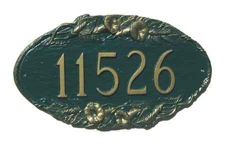 This cast aluminum plaque is available in one size only for wall mounting. Choose from 18 color combinations. Delivery - usually 3 weeks.