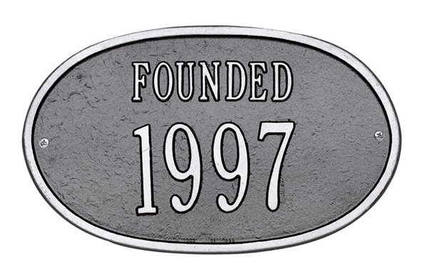 DATE PLAQUE: - This plaque is 12.5 " wide x 7.5 " tall. - Choose either FOUNDED, BUILT, CIRCA, or ESTABLISHED. - Holds four 3" numbers (for year of date).