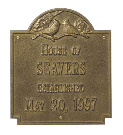 CARDINAL WEDDING PLAQUE - STANDARD SIZE: - This plaque is 10.75 " wide x 12.5" tall. - Each of the two-lines hold up to twelve 1.25" letters / numbers / spaces.